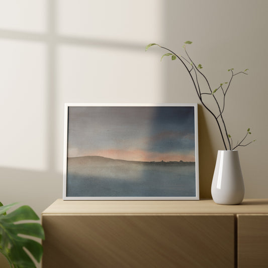 Immerse yourself in the tranquil allure of the Shropshire Hills with 'Misty Memories of Shropshire,' a watercolour landscape painting that captures the enchanting, misty essence of this beautiful region.