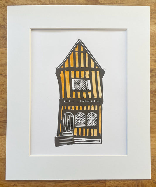 The Crooked House, Lavenham. Limited Edition Linocut Print