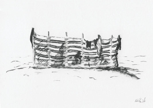 Black & White Surfing Flag - Ink Drawing - Giclée Print